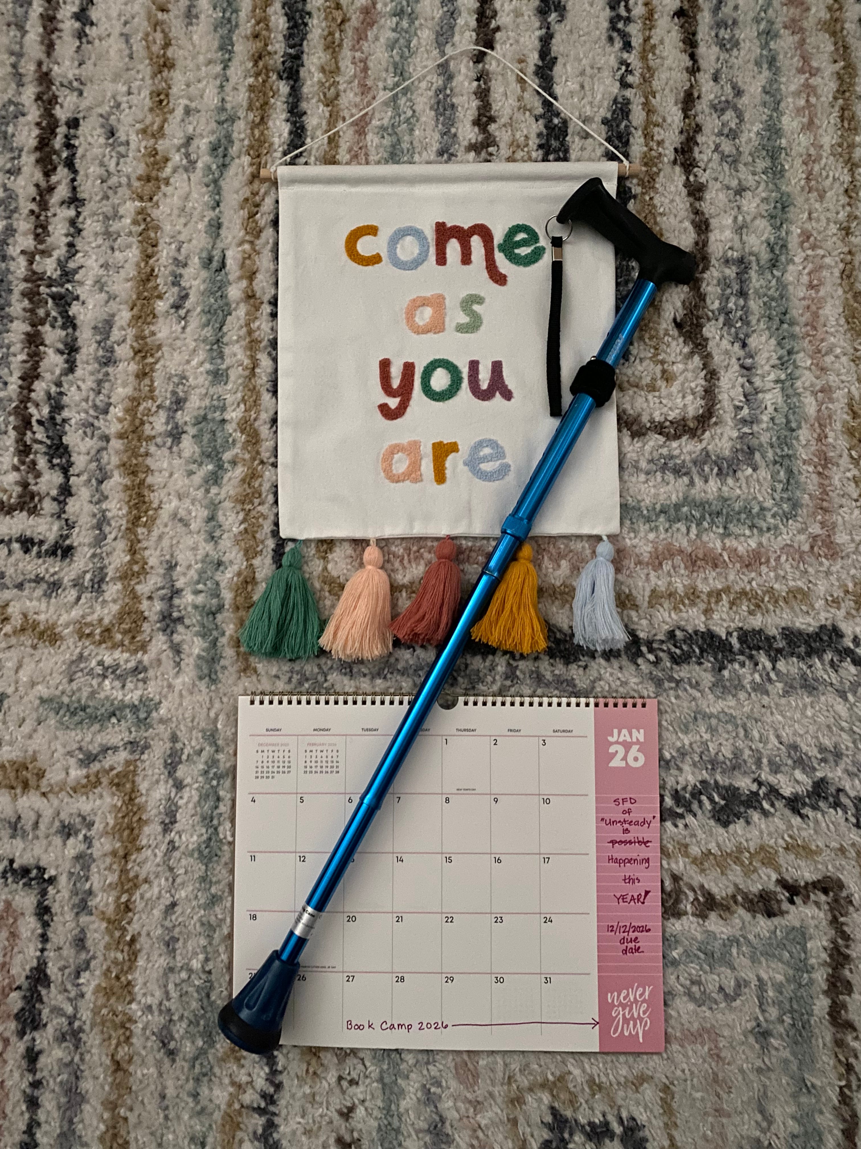 As I said in Silent Writing yesterday, I think "badass" when I picture you with the cane. I think strength. Likely this is because this is how I think of you in general, so the cane is just a colorful enhancement in my mental picture. I'm glad it makes such a difference. As far as book camp goes, it only needs to be a sprint for the people who will benefit from that approach. I regard it as a period of prioritization and focus, taking place within the joy of community. I haven't figured out what I'm doing yet, but I know I will adapt the 6 weeks to what meets my writing needs. I won't stress myself to meet an externally established goal, because I have too much else going on. This is my long-winded way of saying you get to design your experience based on what feels fun and right for you. I hope it's something you can relax into and enjoy.